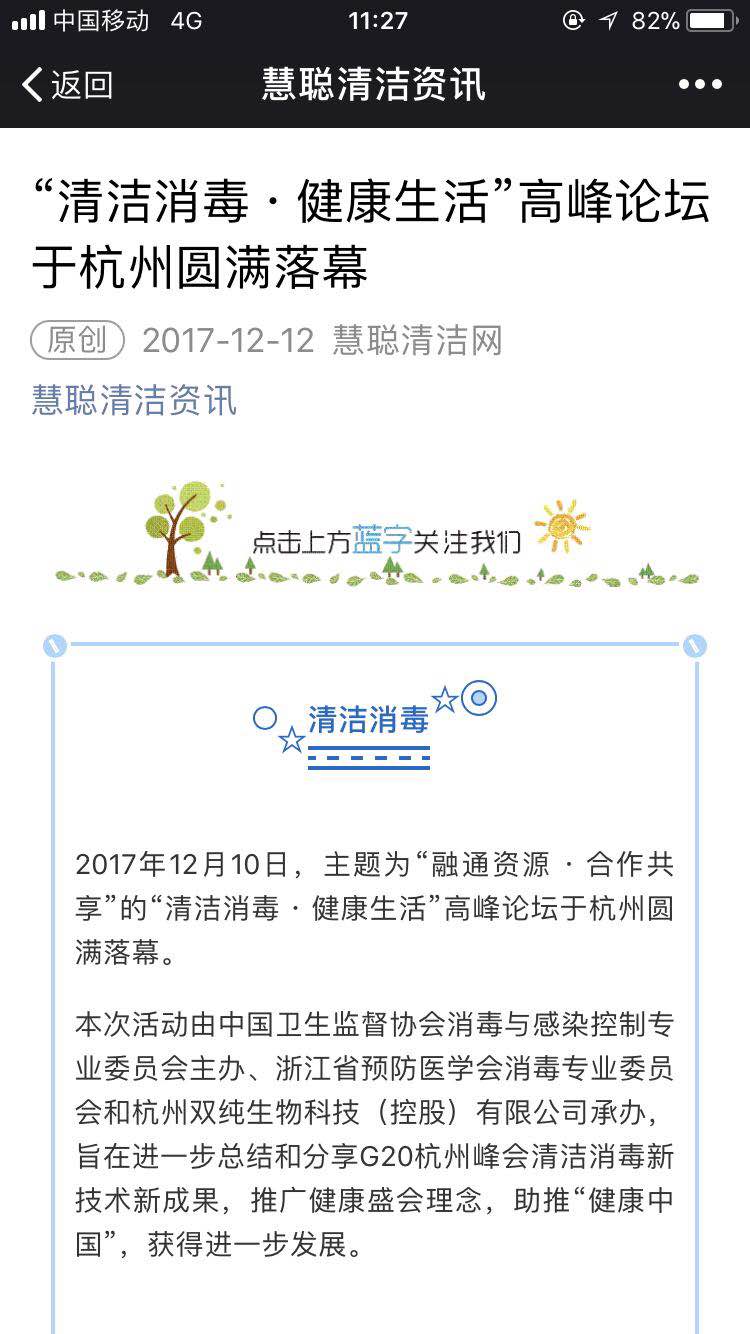 由中国卫生监督协会消毒与感染控制专业委员会主办、浙江省预防医学会消毒专业委员会和杭州双纯生物科技(控股)有限公司共同承办,于2017年12月9日—10日在杭州萧山举办。论坛聚焦清洁消毒的具体要求和技术规范,共有400余位来自全国各地清洁消毒、房地产、物业、酒店等领域资深专家及行业领袖、企业家代表出席论坛,探讨时代命题,并见证“普力空气管家”的发布。